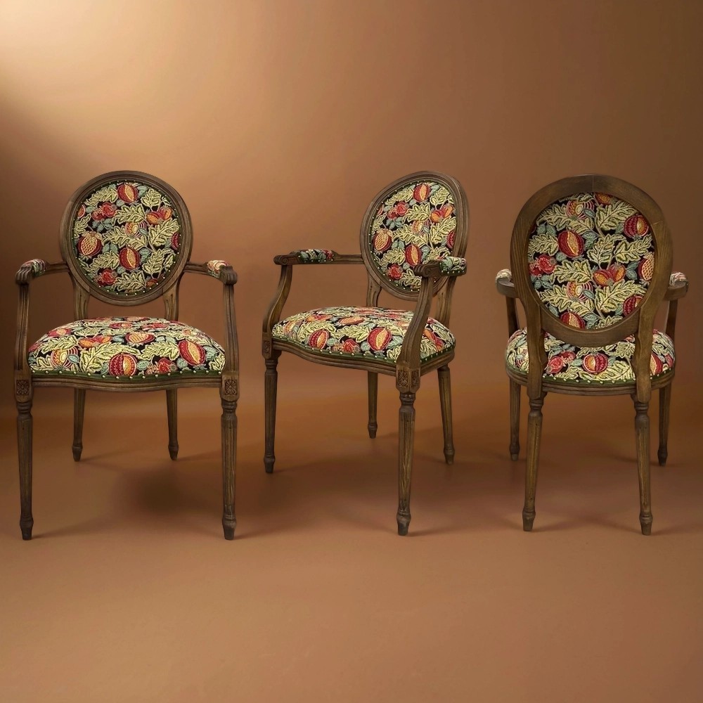Одним из главных достоинств модели является ее гобеленовая спинка и сиденье, вдохновленная работами знаменитого дизайнера Уильяма Морриса. Этот художественный элемент придает изделию особый шарм и изысканность. Узоры, выполненные с любовью к деталям, создают атмосферу утонченности и гармонии, привнося в ваш дом дух английской классики.