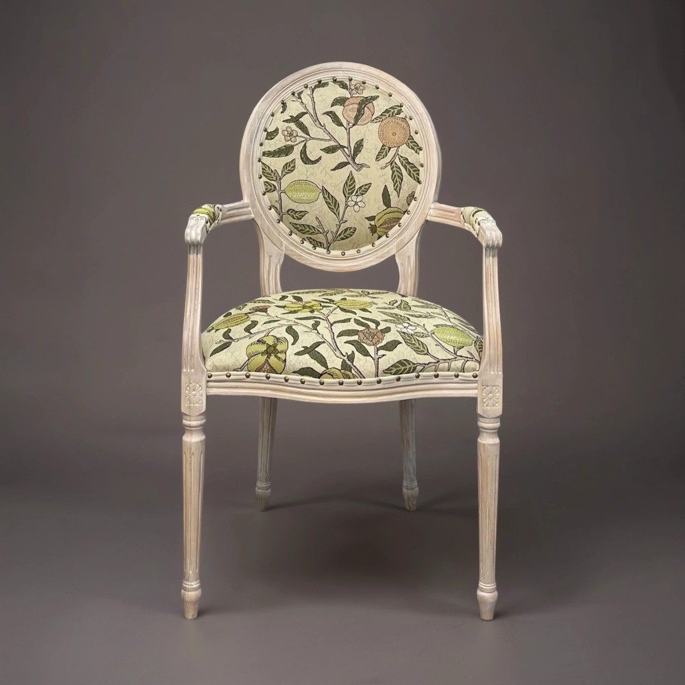 | Категория | Полукресла; Стулья с подлокотниками дерево; Стулья деревянные с мягкой круглой спинкой; Стул с историей; Прованс; Французский стиль; Барокко |